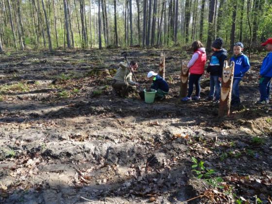 Wiosna, las, świeże powietrze, ruch czego chcieć więcej. Kolejne klasy z prószkowskiej podstawówki postanowiły posadzić swoje, często pierwsze w życiu drzewka. Tym razem były to dwie pierwsze klasy „a" i „b". Pogoda była łaskawa dla dzieci i obdarowała nas słonecznym dniem, który w pełni wykorzystaliśmy. Wszyscy uczniowie oraz opiekunowie posadzili swoje drzewka w rzędach zgodnie z numerami w dzienniku pod czujnym okiem modrzewiowego zająca. Na zakończenie sadzenia ślad po swoim pobycie klasy pozostawiły na tabliczce informacyjnej „zajączka". W ten sposób w przyszłości każdy uczestnik spotkania odnajdzie swoje drzewka. Tradycyjnie po spotkaniu w lesie odbyło się wspólne ognisko zorganizowane na terenie Parku Przy Nadleśnictwie Prószków, gdzie wspólnie wymieniliśmy poglądy na temat pracy leśnika i dalszej współpracy. Z ramienia Nadleśnictwa w akcji brali udział Leśniczy Leśnictwa Wybłyszczów Zdzisław Więcek oraz Specjalista Służy Leśnej Tomasz Bitnerowski. Szkołę Podstawową w Prószkowie reprezentowały Panie: Kornelia Kownacka i Klaudia Lakwa.